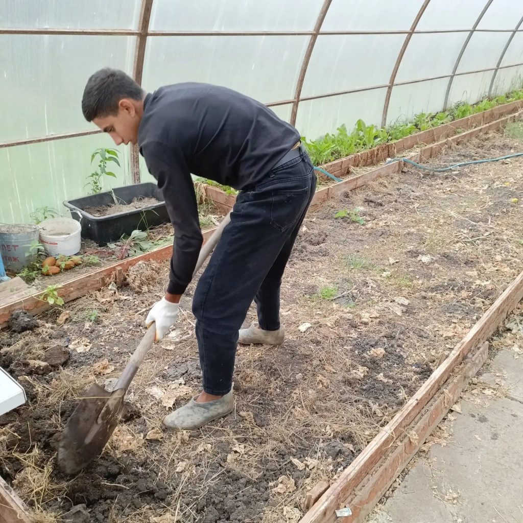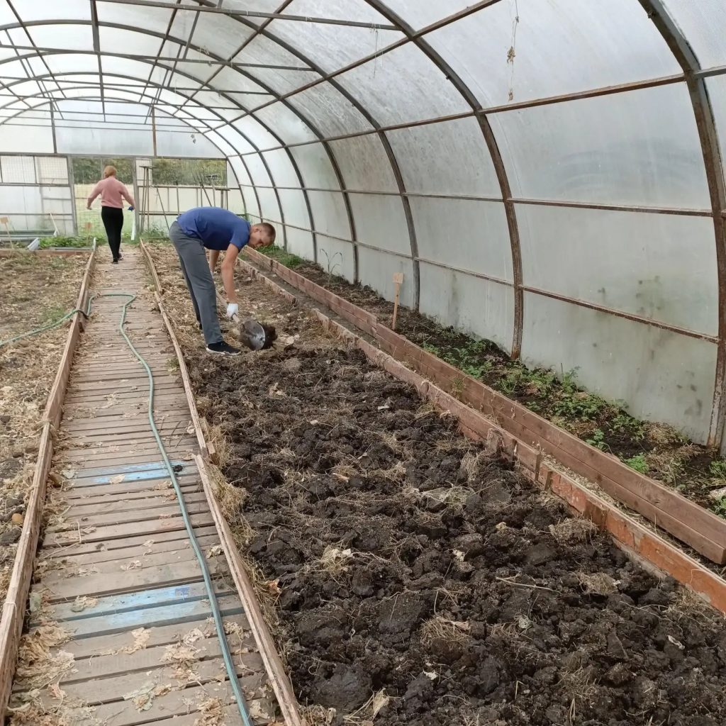 На уроках труда по профилю » Рабочий зелёного хозяйства» 11а класс с учителем Онетко НА готовят теплицу к зимнему периоду. Ведется перекопка грядок, уборка сорняков, уход за новыми всходами зеленых овощных культур.