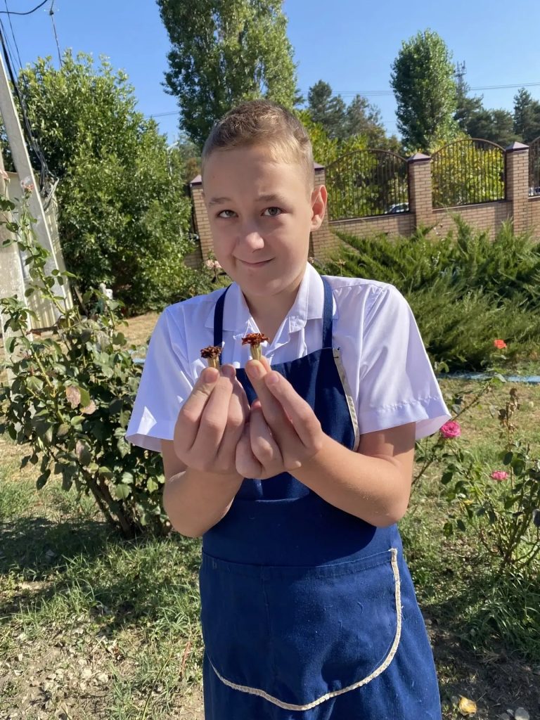 Учащиеся 6 и 7 классов на уроке труда по профилю Цветоводство и декоративное садоводства на уроках труда занимаются сбором семян цветочных растений. Учитель Глушкова Н.В.