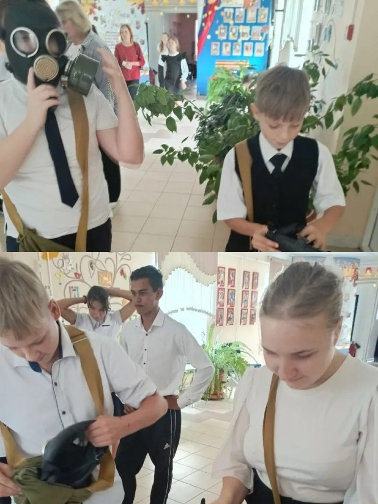 учителем Нечай В А. проведена весёлая перемена, на которой учащиеся надевали противогазы на время. Все участники получили призы.