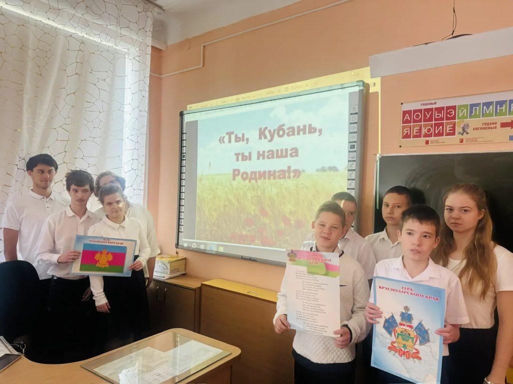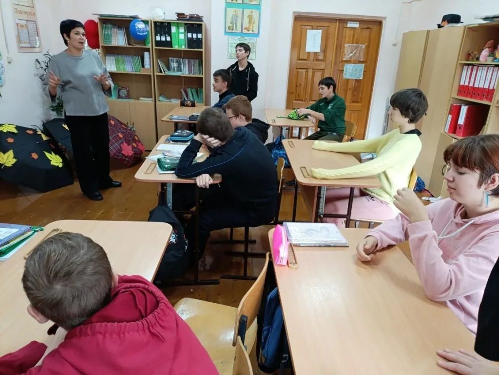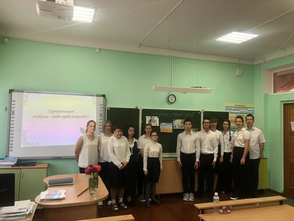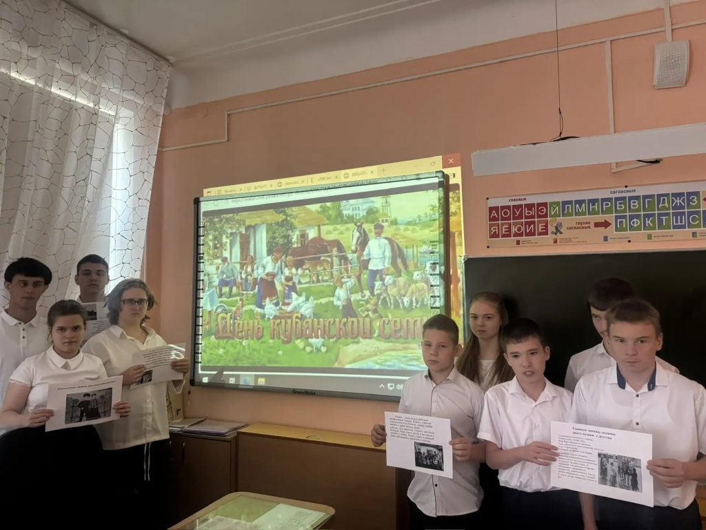 Хроника недели. Ко Дню образования Кубанского казачьего войска с учениками 8 «А» и 7 «Б» классов провела познавательное занятие Шамраева Жанна Николаевна из районной библиотеки, с которой мы дружим уже много лет. Ребята узнали историю казачества и закрепили знания ответами в викторине.  мероприятия 7 а и 9 а классов:  мои горизонты. Россия индустриальная: пищевая промышленность и общественное питание. Классный час, приуроченный ко Дню отца в России. На мероприятии присутствовал Таловский В. А. учитель физкультуры, он ребятам рассказал каким должен быть настоящий мужчина и отец. 16.10. Воспитательное мероприятие. Всемирный день хлеба. Девятиклассники на школьном дворе, наслаждаются замечательной осенней природой и готовят поделку к выставке «Дары Кубани»