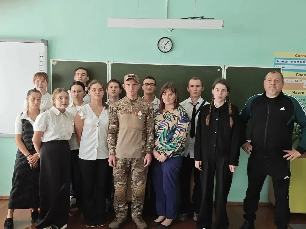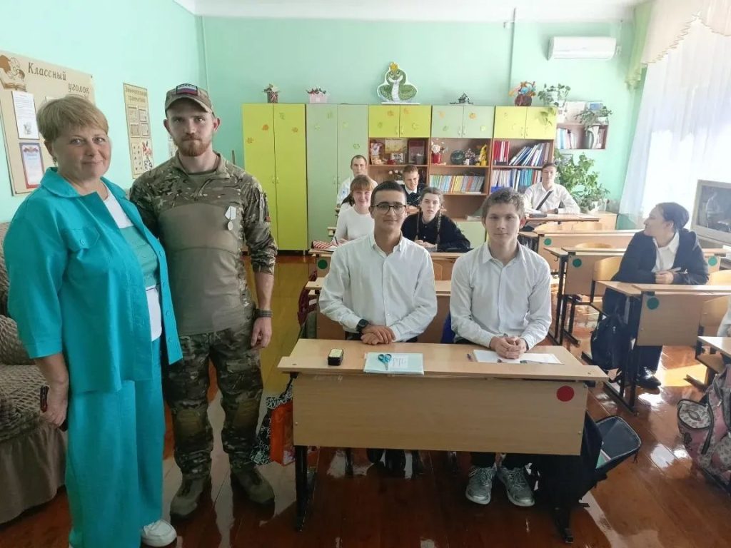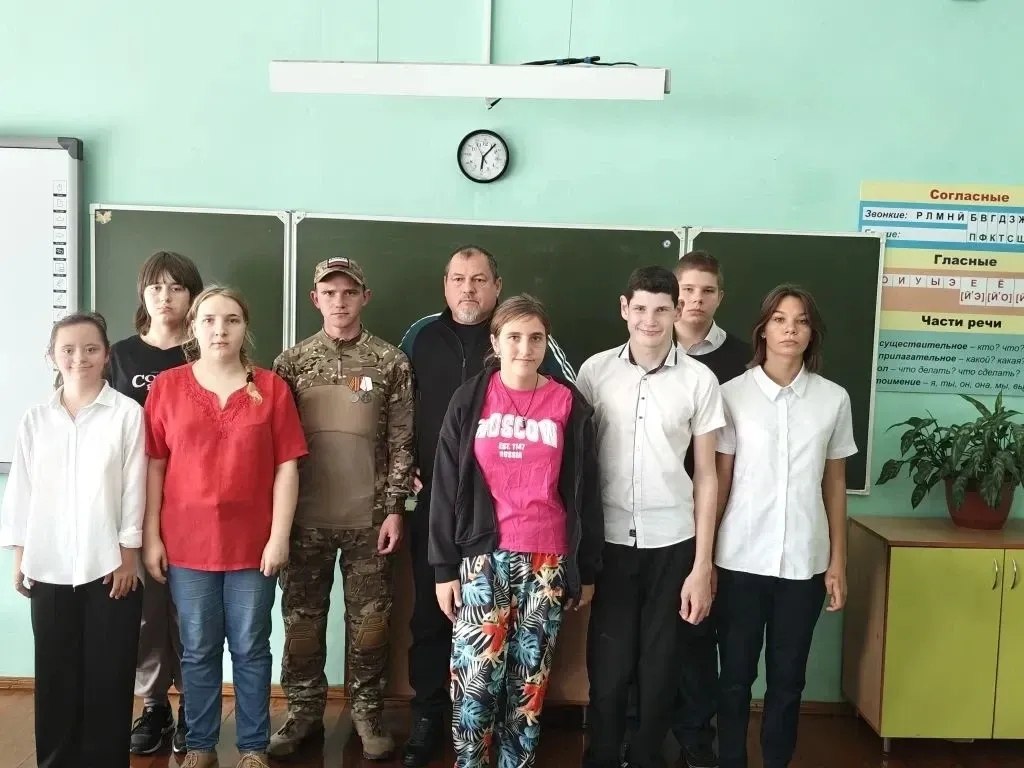 Находясь в отпуске в школу-интернат N 2 г. Абинска приходил наш выпускник Владимир Александрович, участник СВО, награждённый государственными наградами » За храбрость» и » Спасение раненых.»