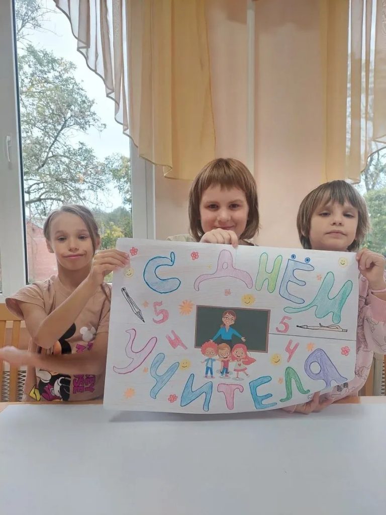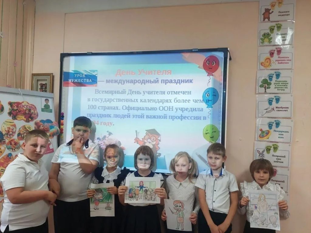 Ко дню Учителя второклассники приняли участие в классном часе и нарисовали плакаты, открытки с поздравлениями. Учитель Руднева Т.А.