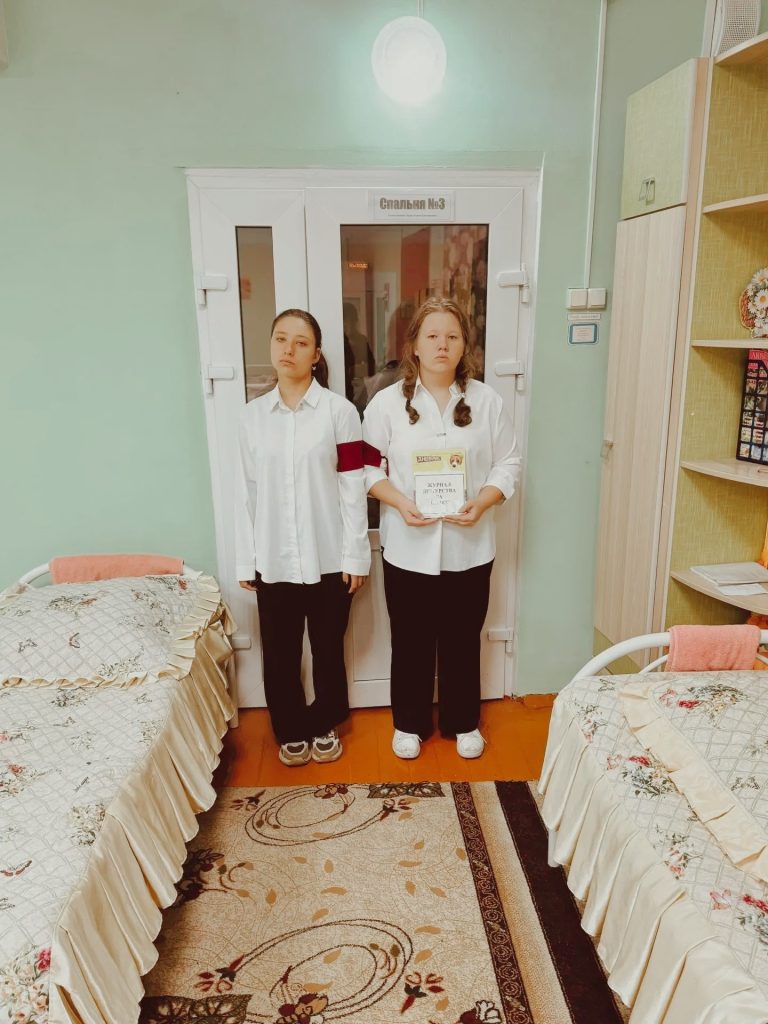 На фото 9а класс дежурит по спальному корпусу. Классный руководитель Волкова Е.И., воспитатель Кацер И.Г.