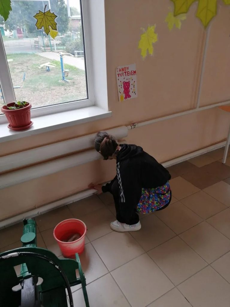 Уборка холлов и коридоров: мытье дверей, радиаторов, лестниц, уборка пыли с батарей учащимися 11 класса на уроках труда(технологии) на профиле «Подготовка младшего обслуживающего персонала». Учитель Лухтанова В.В.