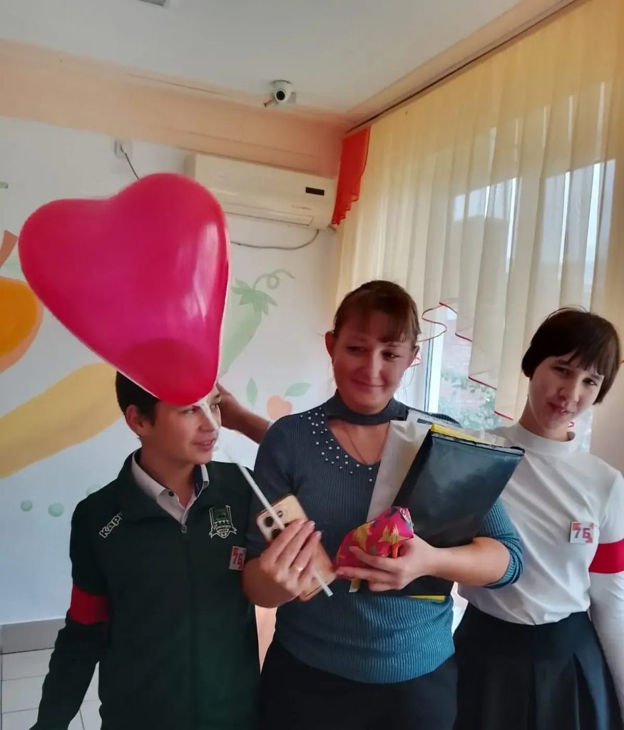 Ученики 7б класса с классным руководителем Глушковой Н.В. поздравили любимых педагогов с профессиональным праздником.