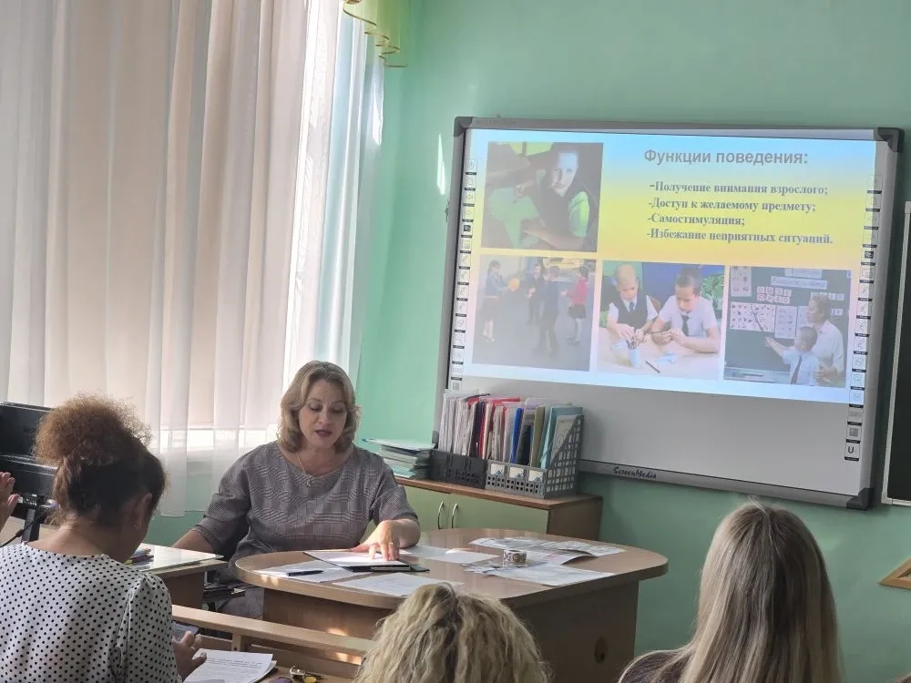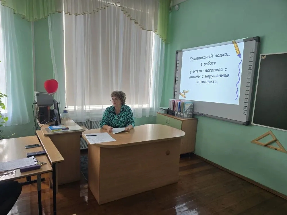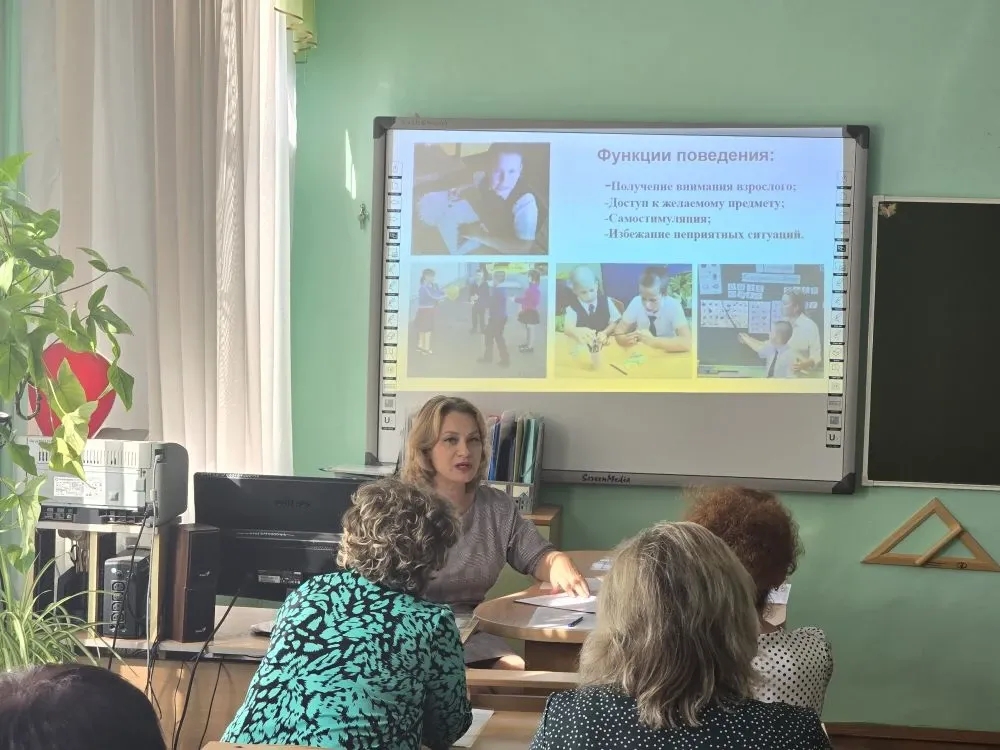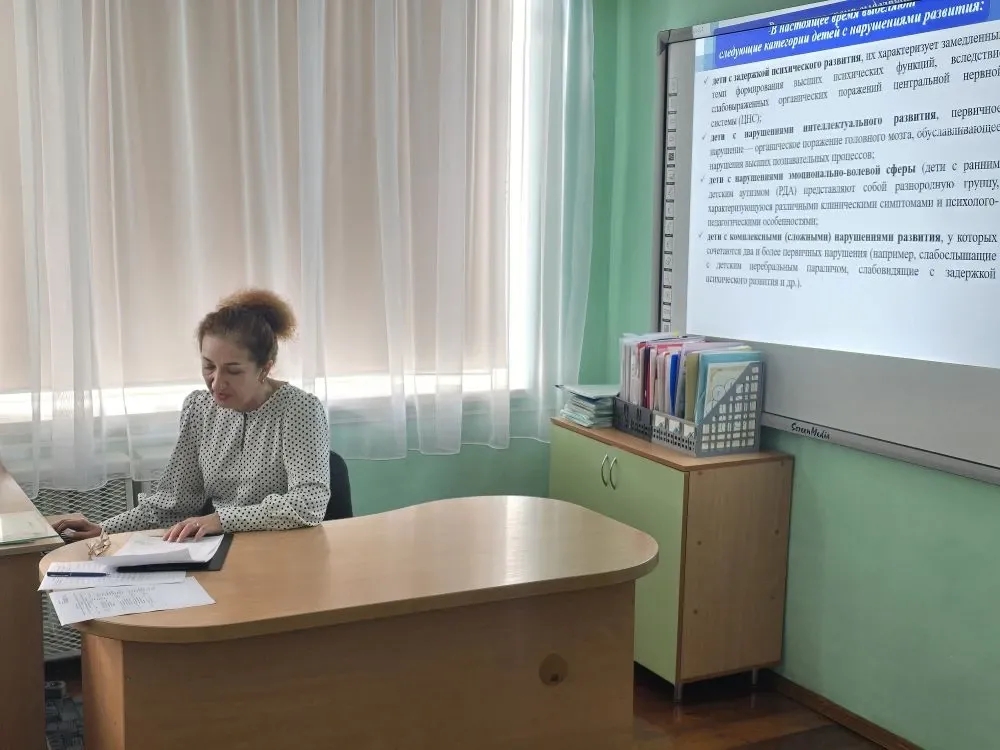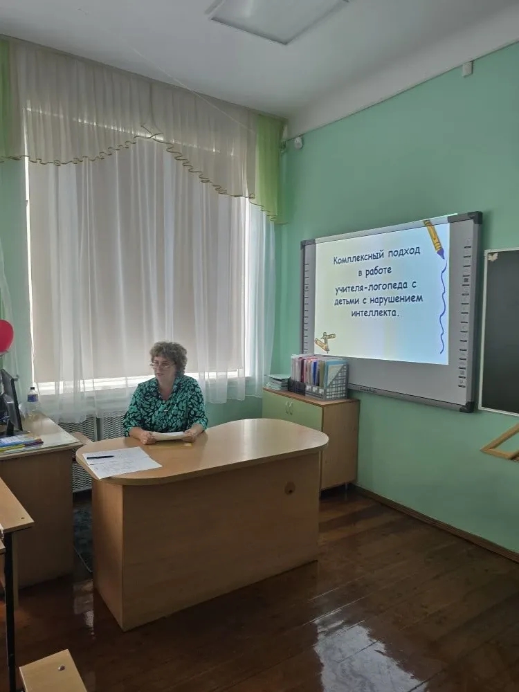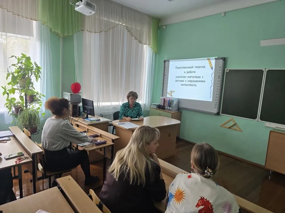Педагоги школы Оганесян Мария Владимировна и Поваляева Лидия Николаевна поделились своим опытом работы с детьми с интеллектуальными нарушениями. Заместитель директора по УВР Золотарёва Елена Дмитриевна рассказала о новых требованиях при подготовке к комплексному экзамену и разработке экзаменационных материалов.