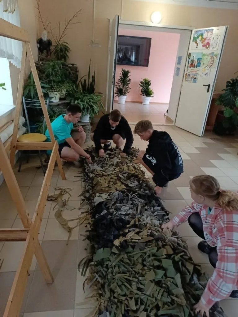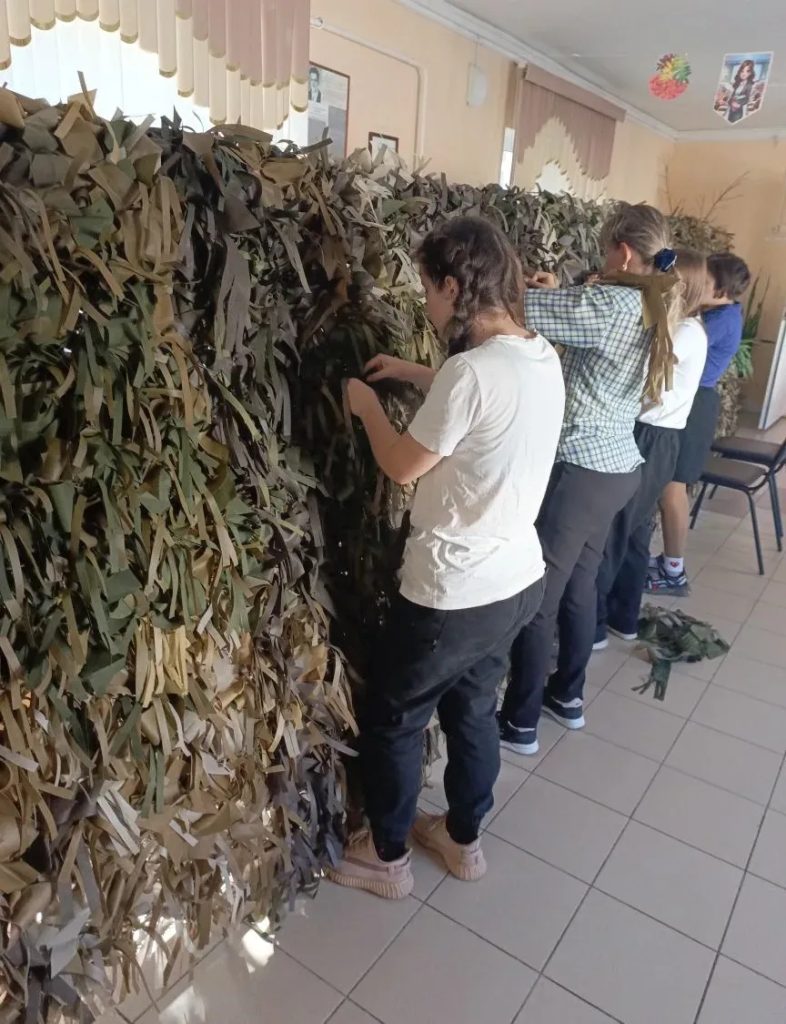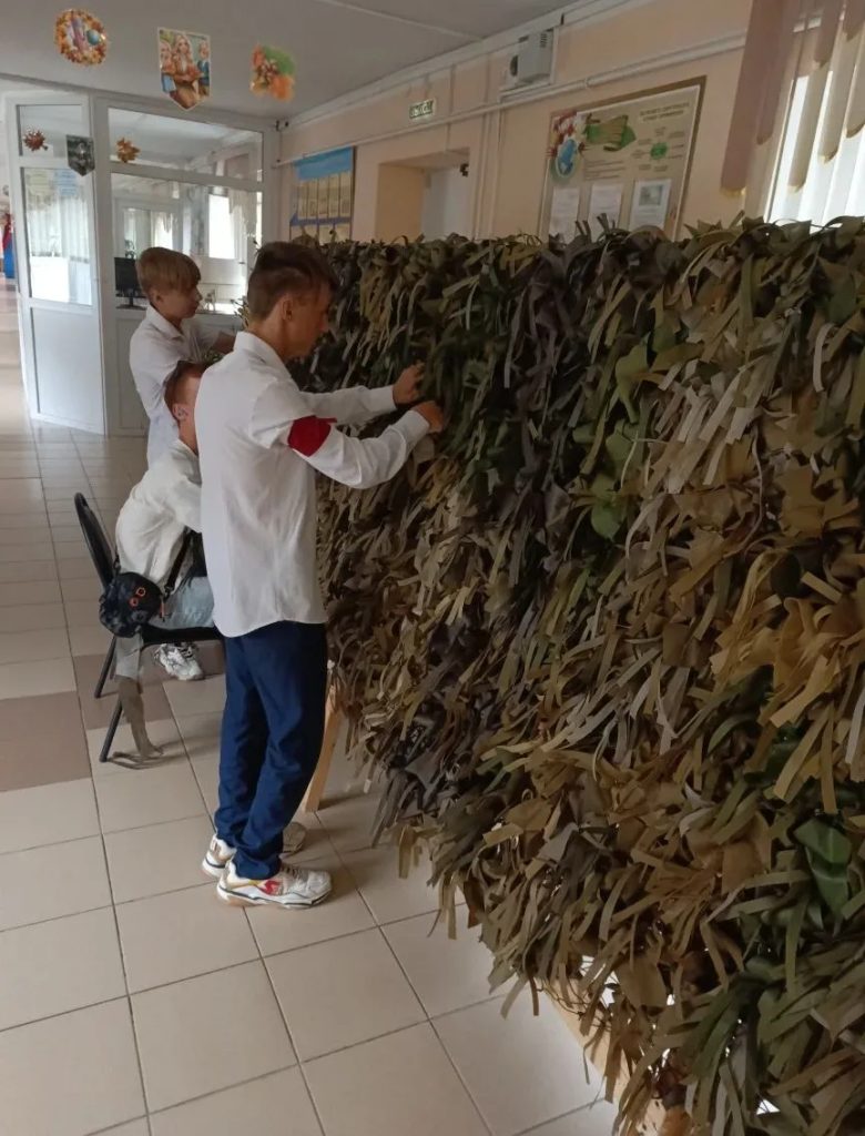 Очередную маскировочную сеть сплетённую руками школьников школы- интерната N2 г. Абинска собрали и упаковали ученики 9Б класса. Ребята отвезли сеть в штаб волонтёрской организации «За Россию», где общались с волонтёрами и получили материал для новой маскировочной сети.