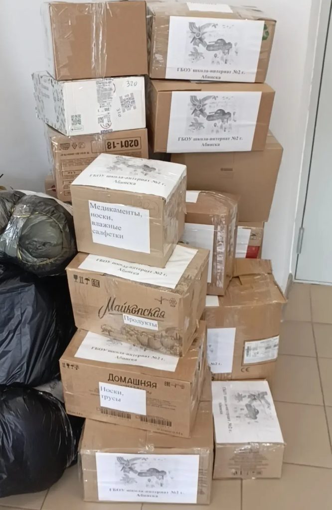 Очередную партию гуманитарной помощи собрали сотрудники школы-интернат N2 г. Абинска, а так же люди для которых не безразличны наши солдаты на СВО.